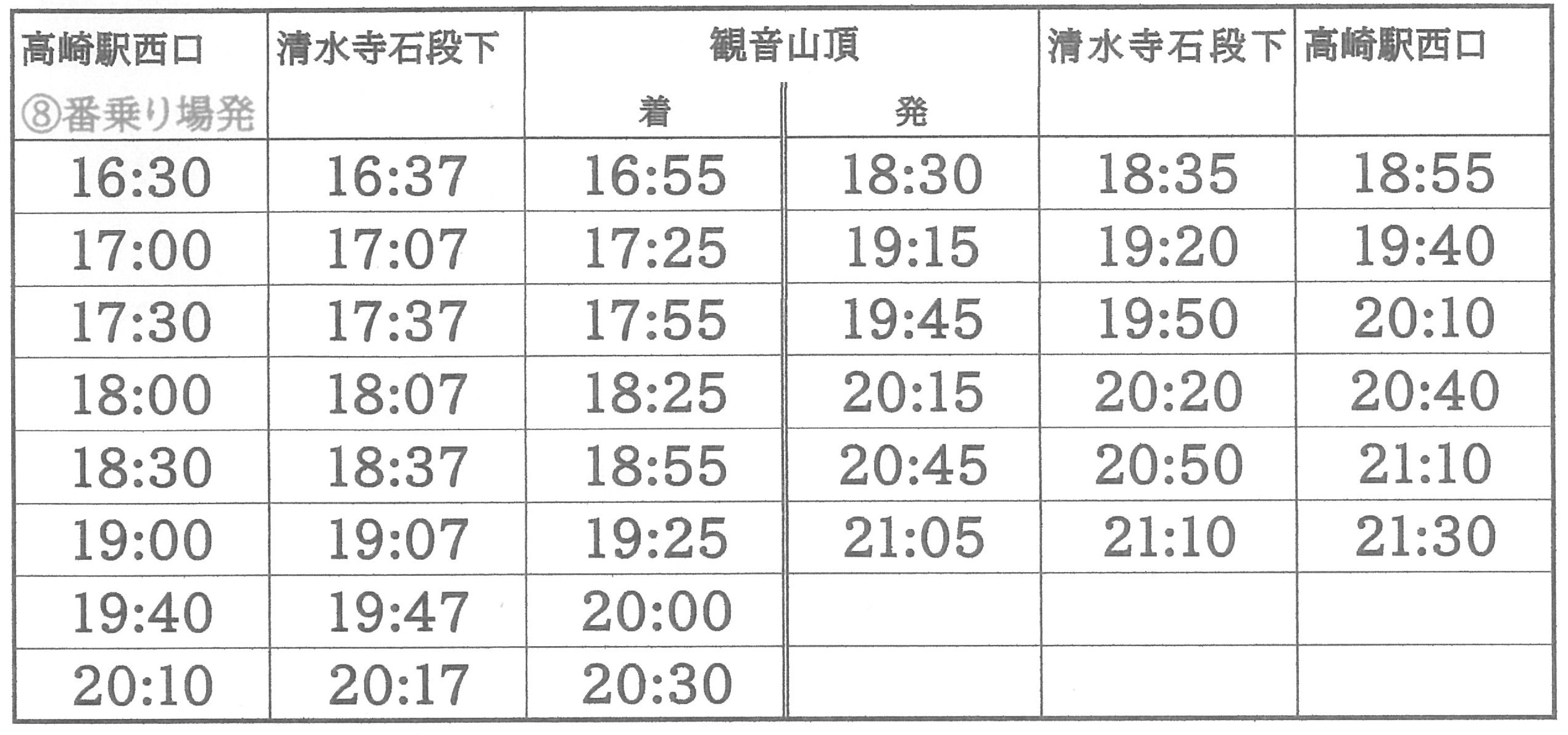 高崎駅西口 臨時バス停 → (聖石橋経由) → 観音山頂(平和塔広場)